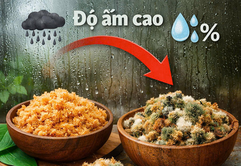 Chà bông không có nguồn gốc, nguồn thịt ban đầu không đảm bảo cũng là nguyên nhân chính khiến chà bông nhanh hư.